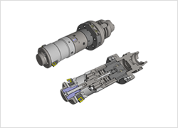 軸芯穴、或いは専用回路より制御エアを補正ヘッドへ伝達。ヘッド内で油圧に増圧変換する機構を設けることで、専用機用と同等の補正システムを完成させました。